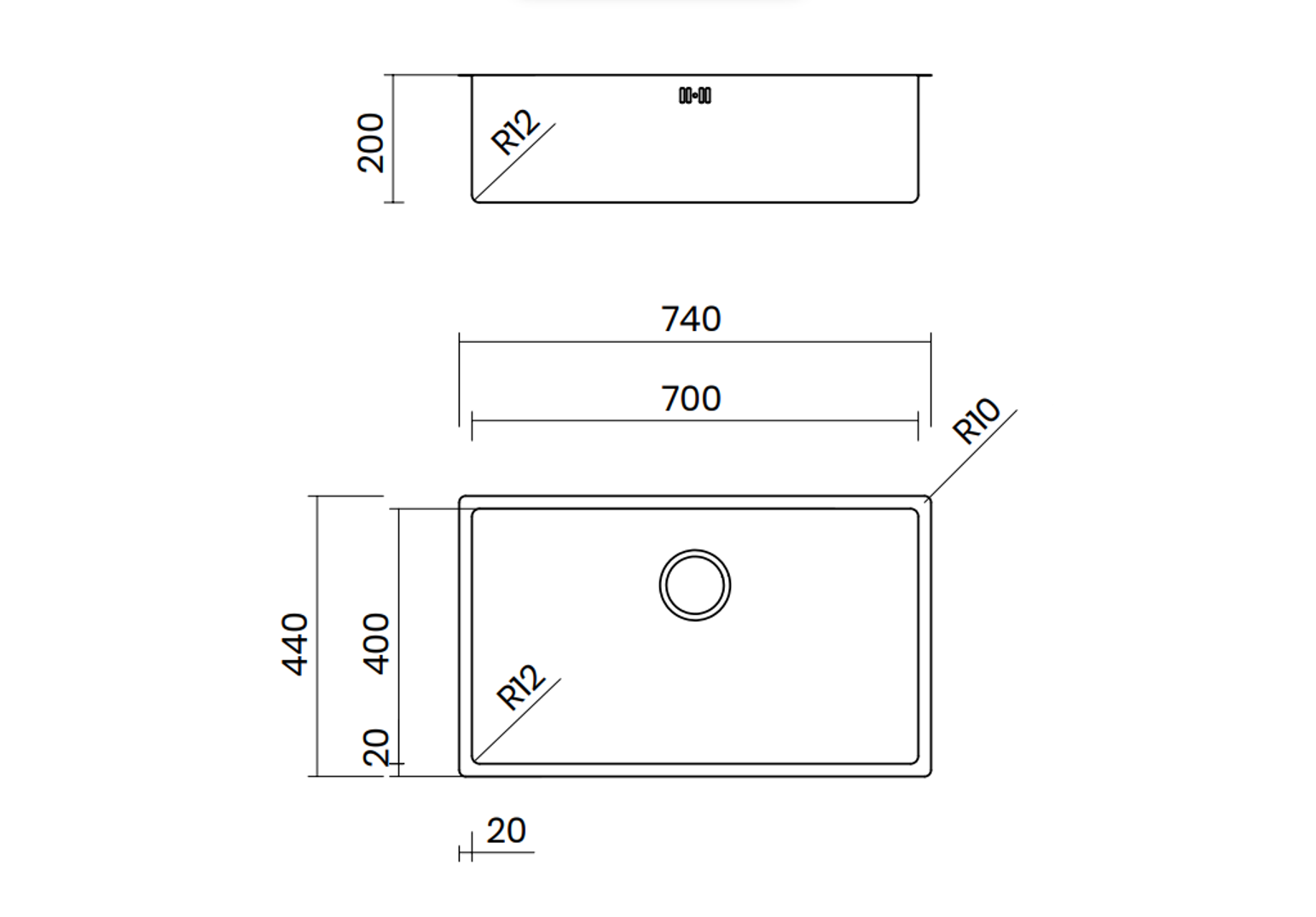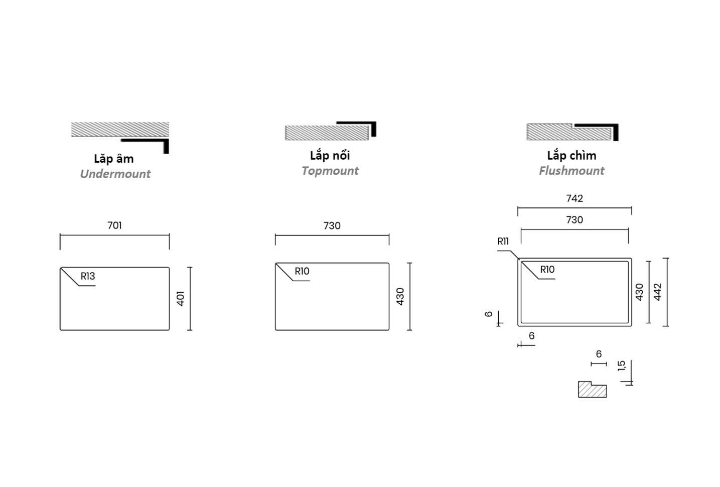 - Bo góc trong: 12 mm