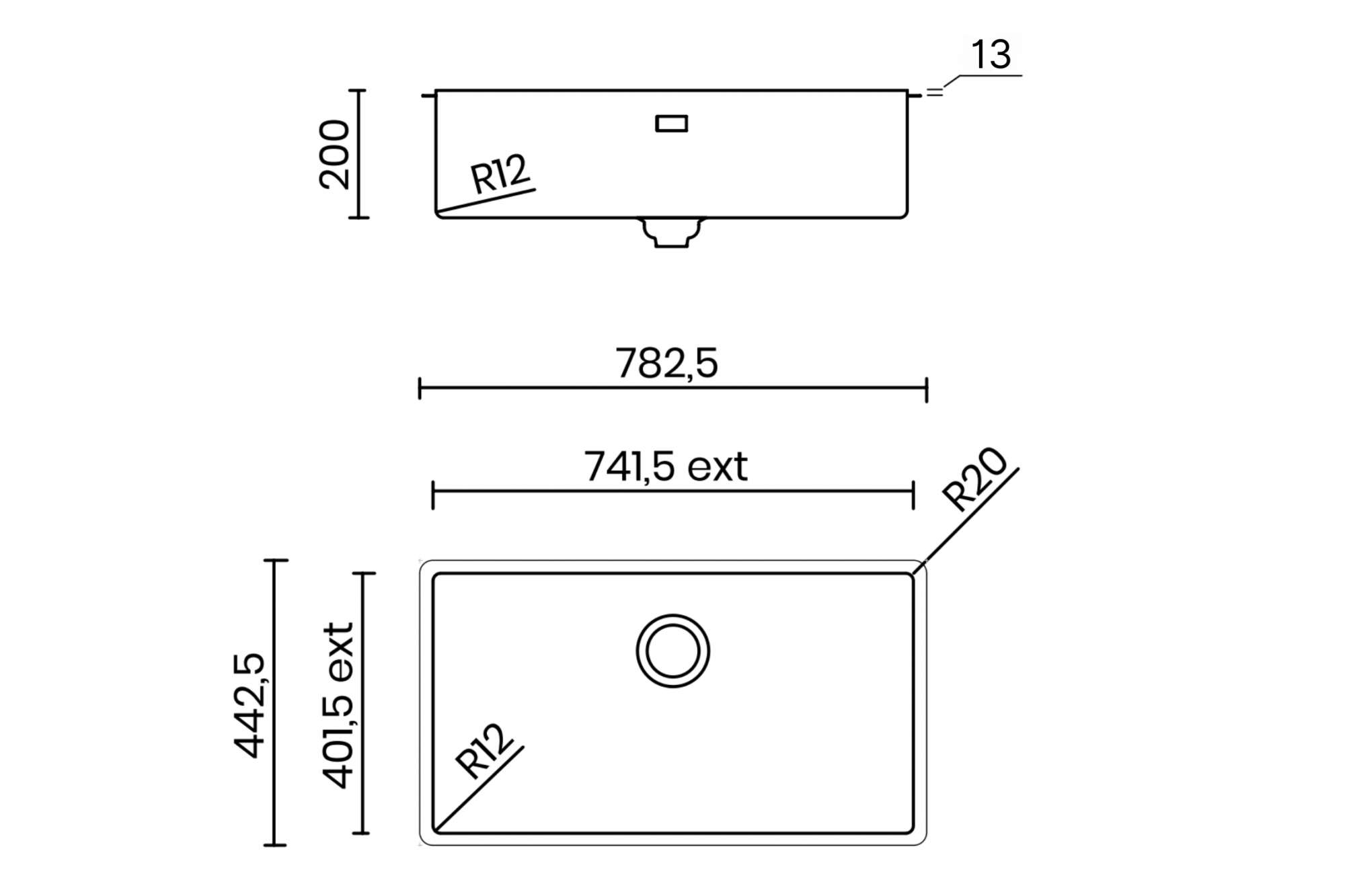 - Bo góc trong: 12 mm