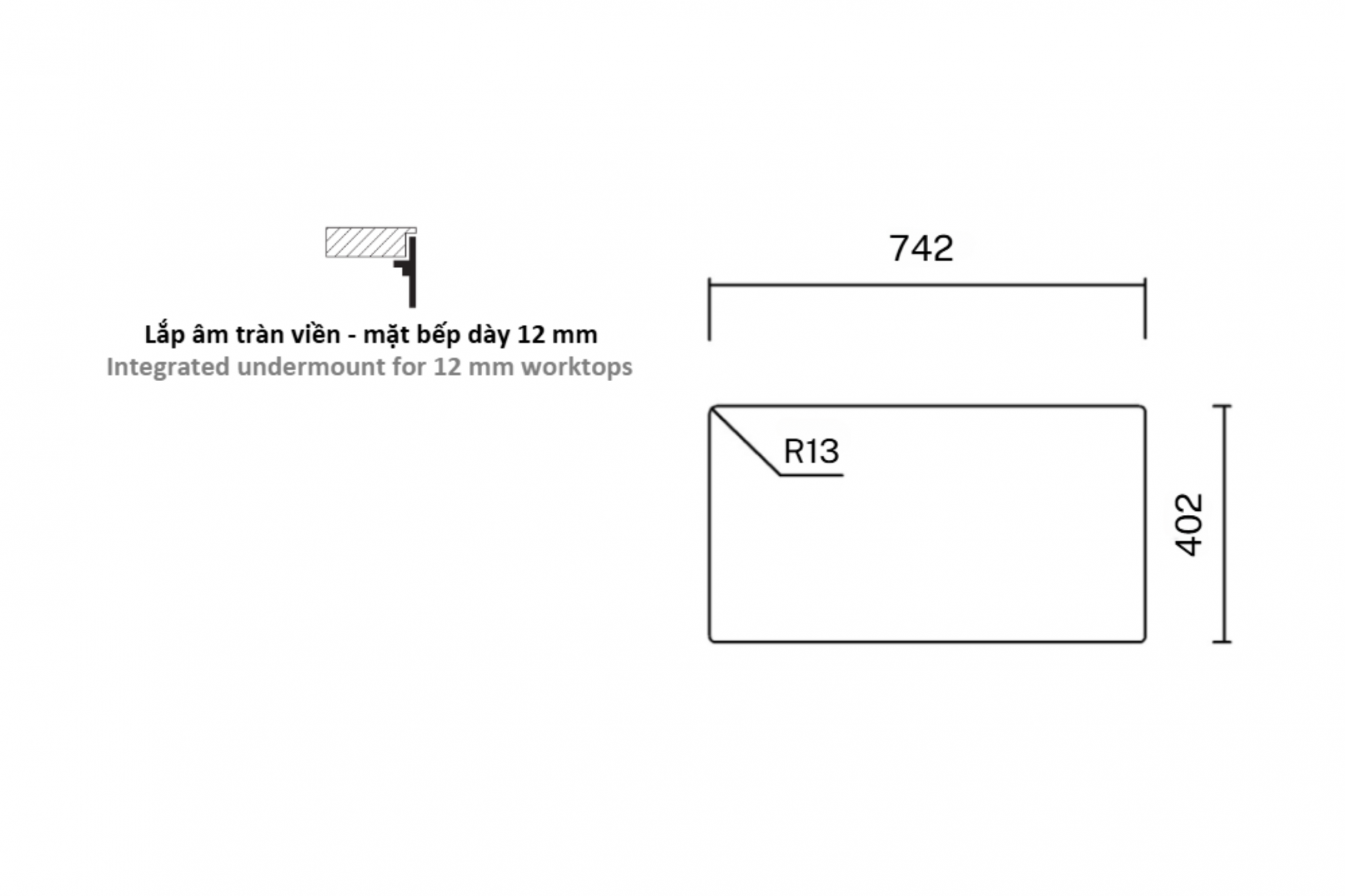LẮP ÂM TRÀN VIỀN - MẶT BẾP DÀY 12 MM